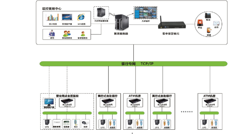 機(jī)房動(dòng)環(huán)監(jiān)控方案針對(duì)機(jī)房?jī)?nèi)的UPS供電系統(tǒng),溫濕度環(huán)境系統(tǒng),消防安防系統(tǒng)等監(jiān)控對(duì)象實(shí)時(shí)集中監(jiān)控,采集數(shù)據(jù)(電流、電壓、運(yùn)行狀態(tài)、溫濕度等),實(shí)現(xiàn)聯(lián)動(dòng)控制、數(shù)據(jù)存儲(chǔ)分析、網(wǎng)絡(luò)傳輸?shù)裙δ埽皶r(shí)偵測(cè)故障,通過策略配置,滿足用戶各種報(bào)警組合的需求?,F(xiàn)場(chǎng)報(bào)警時(shí),報(bào)警可通過短信、電話、聲光警號(hào)等來實(shí)現(xiàn)。監(jiān)控網(wǎng)管系統(tǒng)可以通過穩(wěn)定的B/S或C/S結(jié)構(gòu)進(jìn)行遠(yuǎn)程監(jiān)控瀏覽。